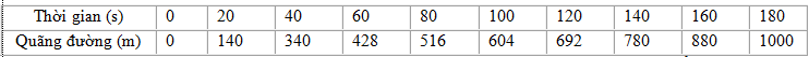 Cứ sau 20s, người ta lại ghi quãng đường chạy được của một vận động viên chạy 1000m.