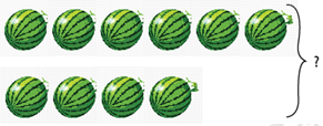 Hỏi cả hai hàng có tất cả bao nhiêu quả dưa hấu?