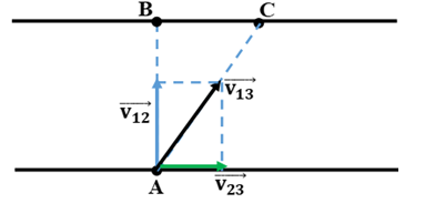 Công thức cộng vận tốc: \(\overrightarrow {{v_{13}}} = \overrightarrow {{v_{12}}} + \overrightarrow {{v_{23}}} \)
