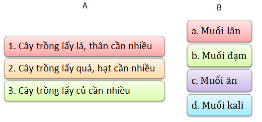 Nối nội dung ở cột A với nội dung tương ứng ở cột B