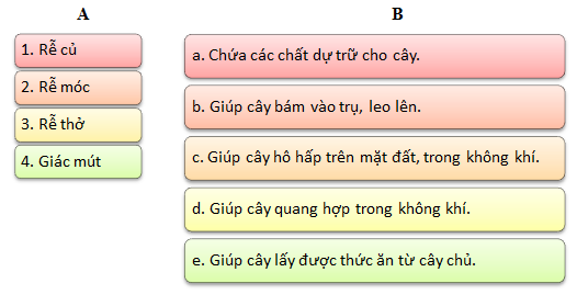 Nối nội dung ở cột A với nội dung tương ứng ở cột