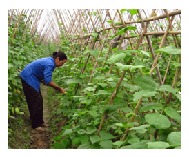 Quan sát hình ảnh, người nông dân thường dùng các cây nứa nhỏ, bắc làm giàn khi trồng đậu, mục đích chính nhằm: