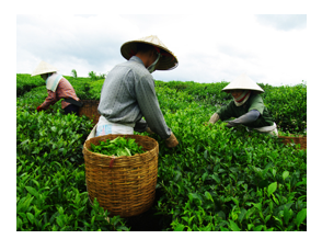 Quan sát hình ảnh, người nông dân thu hoạch chè, đông thời cũng thực hiện biện pháp nào sau
