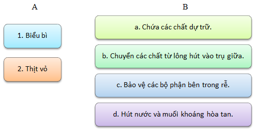 Nối nội dung cột A với nội dung tương ứng ở cột B. Chức năng của các bộ phận trong phần