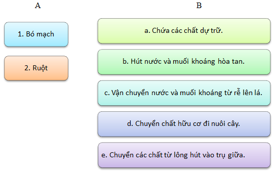 Nối các nội dung ở cột A với nội dung tương ứng ở cột B: