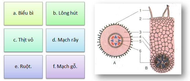 Cho sơ đồ cấu tạo miền hút của rễ:
