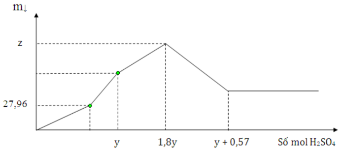 Dung dịch X chứa a mol NaOH và b mol Ba(AlO2)2. Nhỏ từ từ dung dịch H2SO4 vào dung dịch X. Sự thay đổi khối lượng kết tủa theo số mol H2SO4 thêm vào được mô tả qua đồ thị (không nhất thiết được chia theo đúng tỉ lệ) dưới đây: