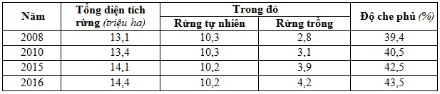 DIỆN TÍCH RỪNG VÀ ĐỘ CHE PHỦ RỪNG CỦA NƯỚC TA QUA CÁC NĂM