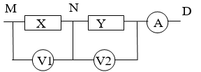 Cho mạch điện như hình vẽ: X và Y là hai hộp, mỗi hộp chỉ chứa 2 trong 3 phần tử: điện
