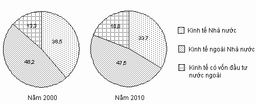 Cho biểu đồ: CƠ CẤU GDP PHÂN THEO THÀNH PHẦN KINH TẾ NƯỚC TA NĂM 2000 VÀ 2010 (%) Nhận xét nào