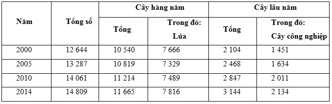 DIỆN TÍCH CÂY TRỒNG PHÂN THEO NHÓM CÂY Ở NƯỚC TA GIAI ĐOẠN 2000 - 2014