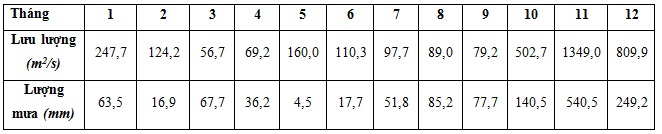 Cho bảng số liệu: Lượng mưa và lưu lượng nước sông Trà Khúc