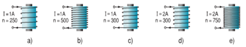 Các nam châm điện được mô tả như hình sau. Hãy cho biết nam châm nào mạnh
