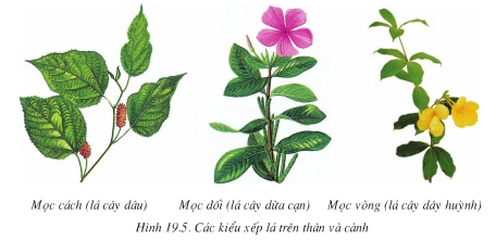 Hình bên nêu cách xếp lá trên thân và cành lần lượt