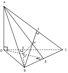 Cho tứ diện \(ABCD\) có \(AD \bot \left( {DBC} \right);\,AD = DB = DC = BC = a\). Gọi \(H\) và \(K\) lần