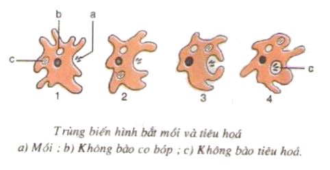 d. không bào tiêu hoá tạo thành bao lấy mồi, tiêu hoá mồi nhờ dịch tiêu hoá.