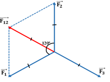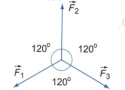 Cho ba lực đồng quy cùng nằm trong một mặt phẳng, có độ lớn bằng nhau và từng đôi một làm thành góc 1200 (hình vẽ). Tìm hợp lực của chúng.