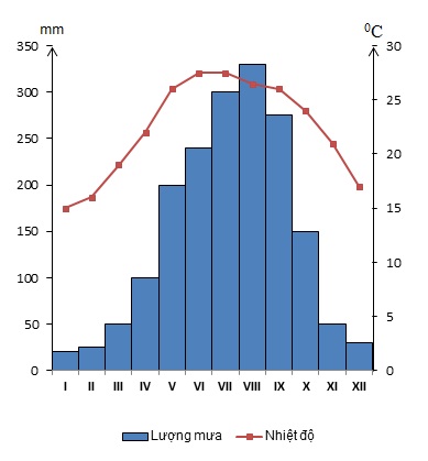Cho biểu đồ sau: Trạm khí hậu Hà Nội Nhận xét đúng với biểu đồ trên