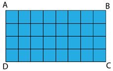 Cho hình chữ nhật ABCD (hình vẽ): Có 8 cột, mỗi cột có 4 ô vuông. Số ô vuông trong hình