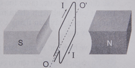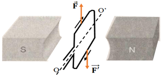 Hình vẽ mô tả khung dây có dòng điện chạy qua được trong từ trường, trong đó khung quay đang