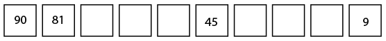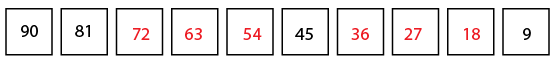 Quan sát chữ số trong các ô vuông ta thấy các chữ số giảm đi 9 đơn vị theo thứ tự từ trái qua phải. Từ đó có thể điền các số tiếp theo.