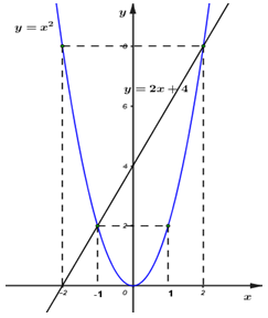 Trong mặt phẳng tọa độ \(Oxy,\) cho parabol \(\left( P \right):\,\,\,y = 2{x^2}\) và đường thẳng \(\left( d \right):\,\,y = 2x + 4.\)