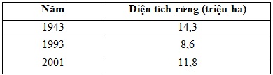 Cho bảng số liệu: Diện tích rừng ở Việt Nam qua một số năm Tính tỉ