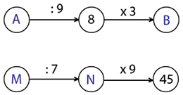 Cho sơ đồ như hình vẽ. Tìm các số A, B, M, N :