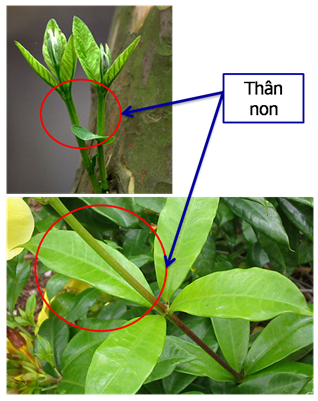 “Thân non của tất cả các loại cây là phần ở ................... và ngọn cành. Thân non thường có ....................”