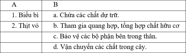 Nối nội dung cột A với nội dung tương ứng ở cột B. Chức năng của các bộ phận trong phần
