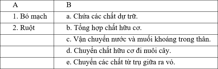 Nối các nội dung ở cột A với nội dung tương ứng ở cột B:
