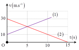 Cho đồ thị v - t của hai ôtô như hình vẽ: Giao điểm của đồ thị cho