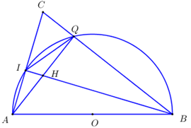 Trên nửa đường tròn, đường kính \(AB\), lấy hai điểm \(I,\,\,Q\) sao cho \(I\) thuộc cung \(AQ\).