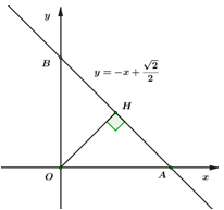Tìm tọa độ các điểm \(A,\,\,B.\) Sử dụng hệ thức lượng trong \(\Delta AOB\) vuông tại \(O\) có đường cao \(OH\) để làm bài toán.