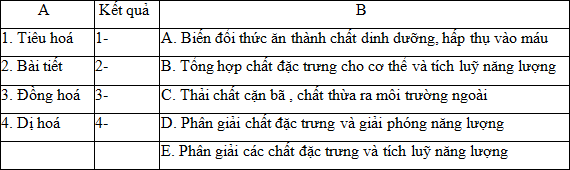 Ghép thông tin cột A và cột B sao cho phù hợp: