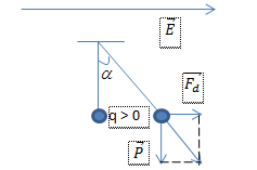 + Áp dụng bài toán con lắc đơn chịu thêm tác dụng của lực điện: \(\overrightarrow {{F_d}} = q\overrightarrow E \)