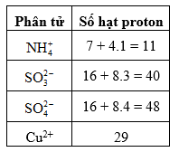 Ion nào có tổng số proton là 48 ? (Biết số Z của : H = 1, N = 7, O = 8, S = 16, Cu = 29)