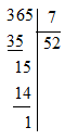 1 tuần = 7 ngày. Muốn biết một năm (không phải năm nhuận) có bao nhiêu tuần ta thực hiện phép chia 365 chia cho 7 (thực hiện phép chia số có ba chữ số cho số có một chữ số).