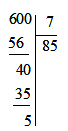 Muốn biết cắt được bao nhiêu đoạn như thế và còn thừa mấy mét dây ta thực hiện phép chia \(600:7\) số dư chính là số mét dây còn thừa ra.