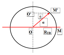 Nếu tàu ở vị trí M’ có vĩ độ α thì bán kính quỹ đạo được tính bởi công thức: \(R = O'M' = {R_{TD}}.\cos \alpha \)