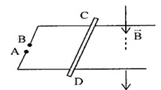 Thanh kim loại CD có chiều dài \(L = 20cm\) khối lượng \(m = 100g\) đặt vuông góc với 2 thanh ray