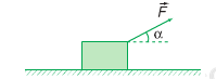 Một vật có khối lượng m = 4,0 kg chuyển động trên mặt sàn nằm ngang dưới tác dụng của một lực \(\overrightarrow F \) hợp với hướng chuyển động một góc α = 30o (Hình vẽ). Hệ số ma sát trượt giữa vật và sàn là µt = 0,30. Tính độ lớn của lực để vật chuyển động thẳng đều. Lấy g = 10 m/s2.