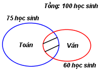 Trong 100 học sinh có 75 học sinh thích học Toán, 60 học sinh thích học Văn.