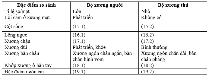 Nội dung cần điền ở (16.1) và (16.2) trong bảng lần lượt là