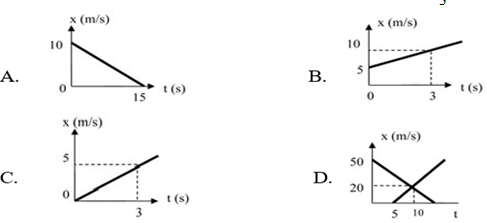 Đâu là đồ thị chuyển động của phương trình: \(x = 10 - \dfrac{2}{3}t\,\,\left( m \right)\)