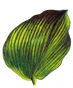 + Trong hình bên, các đường gân lá có dạng vòng cung, xuất phát từ gốc lá, kết thúc ở chóp lá → Hình cung.