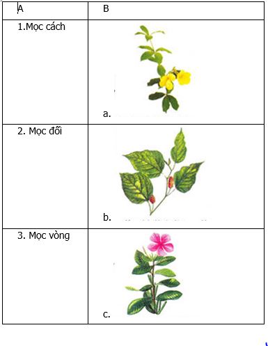 + Hình a: Nhiều lá mọc từ 1 mấu thân, vòng quanh thân → mọc vòng.