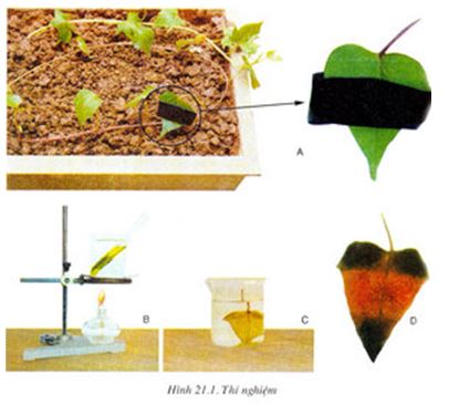 Cho hình ảnh và các bước tiến hành sau: 1. Dùng băng dính đen bịt kín 1 phần lá ở 2 mặt,