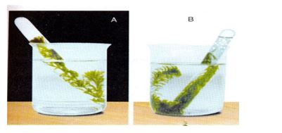 Hiện tượng nào sau đây xảy ra ở cốc thí nghiệm có cành rong để ngoài