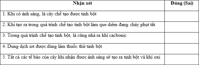 Cho các nhận xét sau: Đúng ghi Đ, sai ghi
